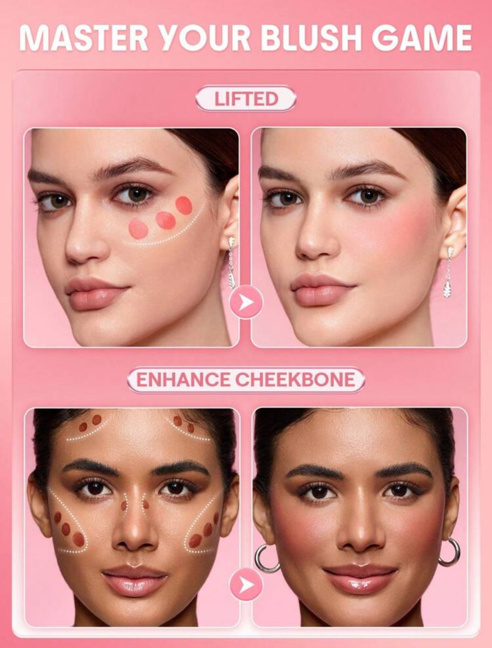 • رنگ “Love Cake” — صورتی ملایم / طبیعی — رنگی دخترونه و ملایم که ظاهر گونهها رو لطیف، طبیعی و شاداب میکند.